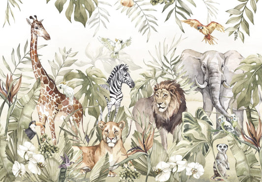 Tropikal Safari Hayvanları Temalı Duvar Kağıdı