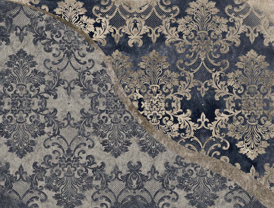 Barok Desenli Lacivert Duvar Kağıdı