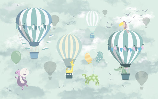 Uçan Balonlar ve Hayvanlarla Dolu Çocuk Odası Duvar Kağıdı | Duvar Kağıdı Marketi