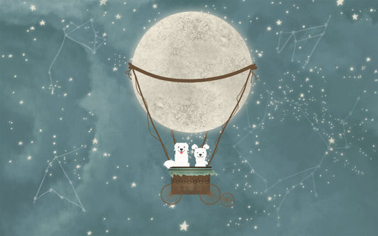 Gökyüzünde Balonla Uçan Köpek Desenli 3D Duvar Kağıdı | Duvar Kağıdı Marketi