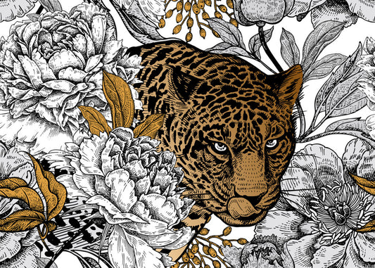 Kaplan ve Çiçek Desenli 3D Duvar Kağıdı | Duvar Kağıdı Marketi