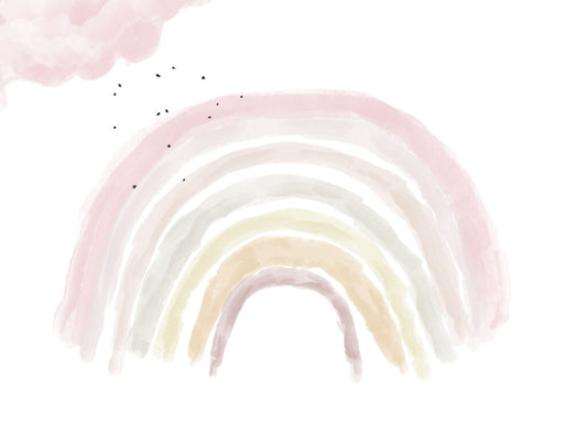 Sulu Boyalı Gökkuşağı ve Bulut Desenli Duvar Kağıdı