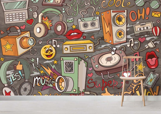Teknolojik Eşya Desenli 3D Duvar Kağıdı | Duvar Kağıdı Marketi