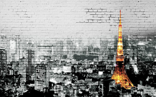 Taş Duvar Desenli Eyfel Kulesi 3D Duvar Kağıdı | Duvar Kağıdı Marketi