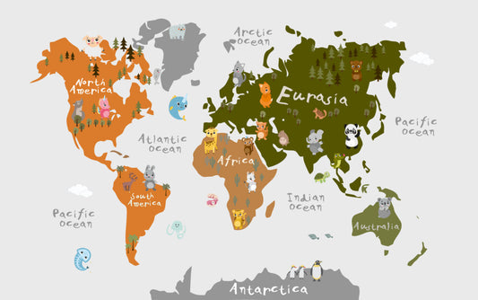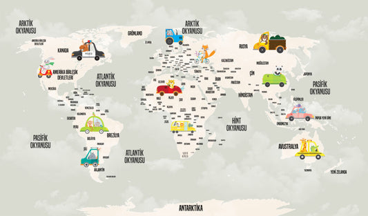 Hayvan ve Değişik Şekilli Çocuk Haritası 3D Duvar Kağıdı | Duvar Kağıdı Marketi