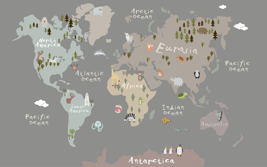 Soft Kahverengi Zemin'li Hayvanlı Çocuk Haritası 3D Duvar Kağıdı | Duvar Kağıdı Marketi