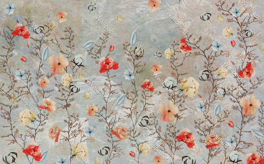 Çok Renkli Çiçekli Dal Desenli 3D Duvar Kağıdı