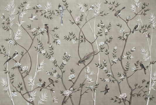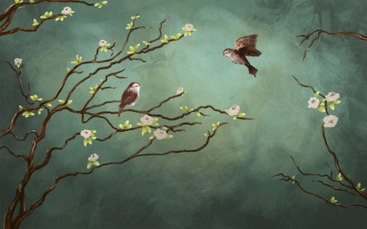 Dal ve Kuş Desenli 3D Duvar Kağıdı