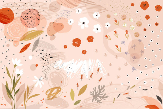 Çok Çeşit Yaprak ve Çiçek Desenli 3D Duvar Kağıdı