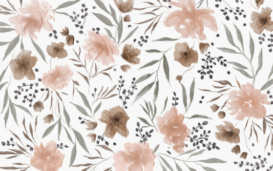 Koyu Renkli Gül ve Bitki Desenli 3D Duvar Kağıdı