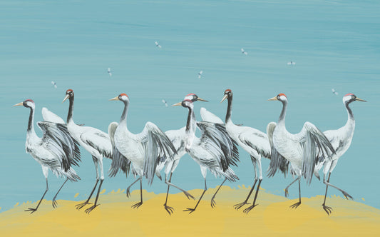 Mavi Zemin'li Turna Kuşu 3D Duvar Kağıdı