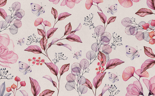 Soft Pembe Tonların'da Çicekler Ve Kelebek Duvar Kağıdı