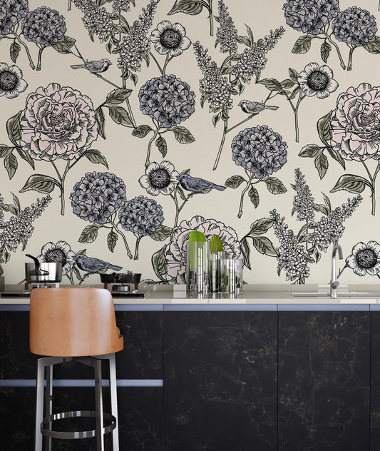 Yukarıdan Sarkılmış Soft Çicekler 3D Duvar Kağıdı