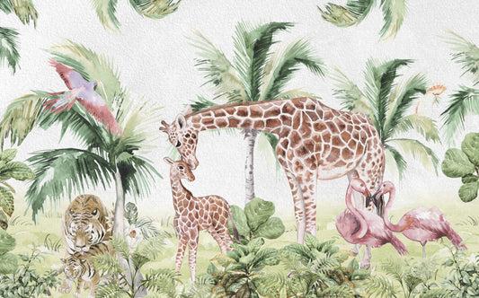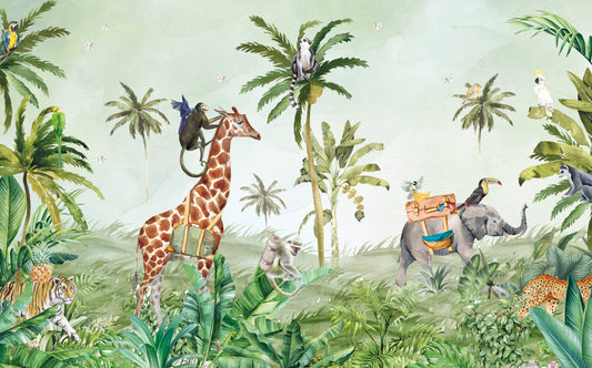 Tropikal Ormanda Hayvanlar 3D Duvar Kağıdı