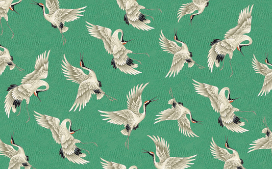 Yeşil Zemin'li Uçan Kuşlar 3D Duvar Kağıdı