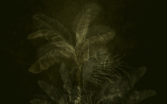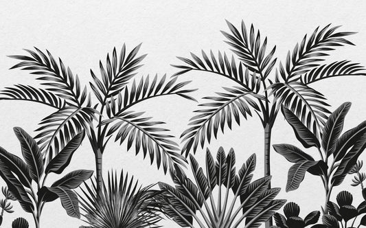 Siyah Beyaz Tropikal Ağaç Desenli Duvar Kağıdı
