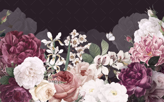 Koyu Tonlar'da Çicek Desen Duvar Kağıdı