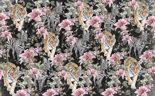 Zebra ve Kaplan Desenli Çiçek Duvar Kağıdı