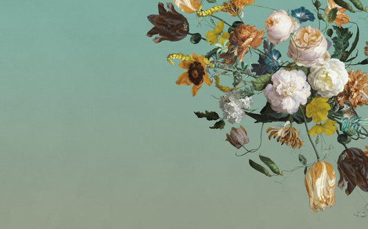 Su Yeşili Zeminli Çicekler 3D Duvar Kağıdı