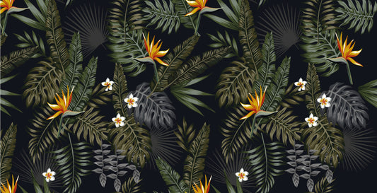 Koyu Tonlar'da Tropikal Yapraklar Duvar Kağıdı