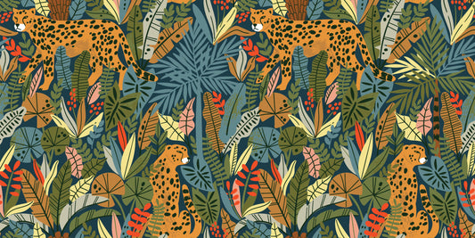 Tropikal Yapraklar İçerisinde Çita Çocuk Duvar Kağıdı