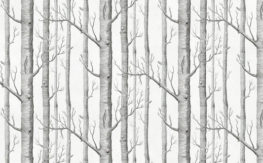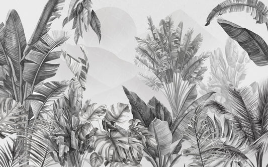 Siyah Beyaz Tropikal Ağaç ve Yapraklar Duvar Kağıdı
