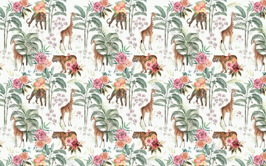 Tropikal Ağaçlar ve Safari Hayvanları Duvar Kağıdı