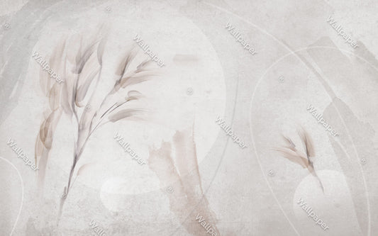 Mermer Zeminde Mavi ve Bej Tüyler Duvar Kağıdı