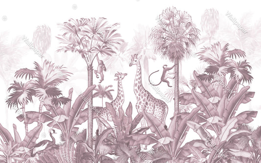 Zürafalar ve Tropikal Ormandaki Hayvanlar Pembe Duvar Kağıdı