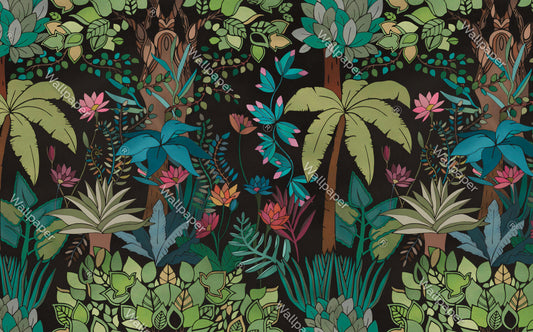 Tropikal Yapraklar Çizgisel Orman Duvar Kağıdı