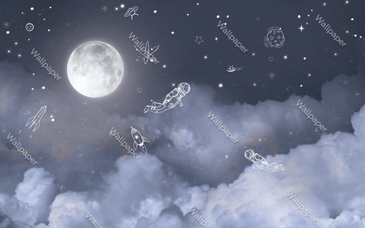 Ay Işığında Çizgisel Astronot Duvar Kağıdı