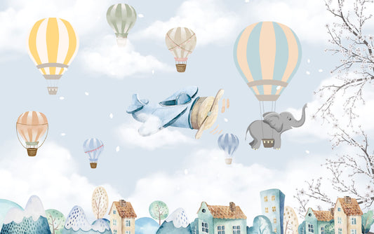 Kanatlı Uçak ve Balonla Uçan Fil Duvar Kağıdı