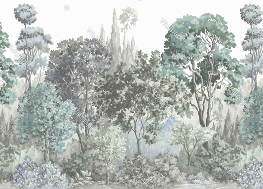 Soft Yeşil Tonlarda Orman Görseli Duvar Kağıdı