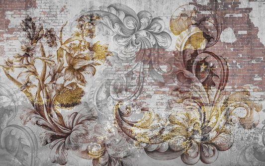 Tuğla Duvarda Çiçekler Duvar Kağıdı Duvar Kağıdı