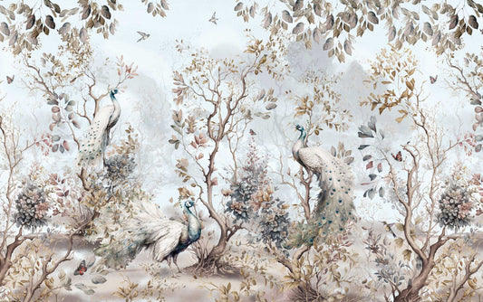 Sonbahar Yaprakları ve Tavus Kuşları Duvar Kağıdı