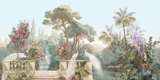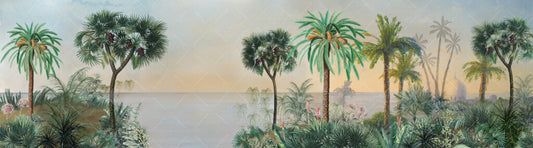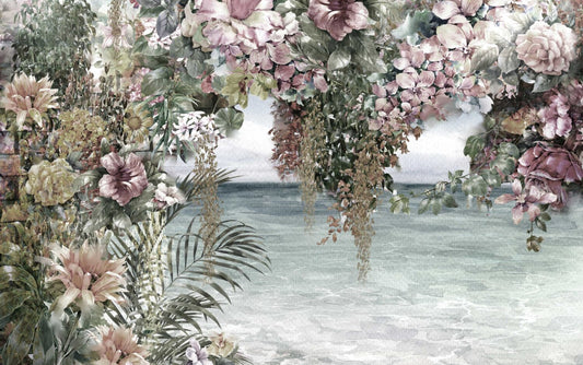 Deniz ve Ağaç Desenli Tropikal Duvar Kağıdı