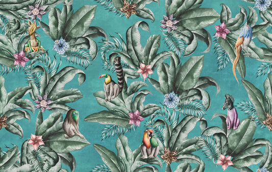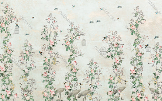 Değişik Hayvan ve Çiçek Desenli 3D Duvar Kağıdı
