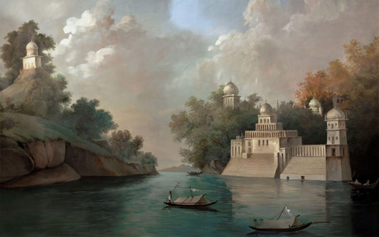 Deniz Kenarında Tarihi Bina ve Orman Desenli 3D Duvar Kağıdı | Duvar Kağıdı Marketi
