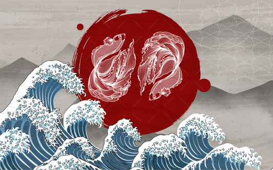 Dalgalar ve Koi Balığı Desenli Duvar Kağıdı | Duvar Kağıdı Marketi