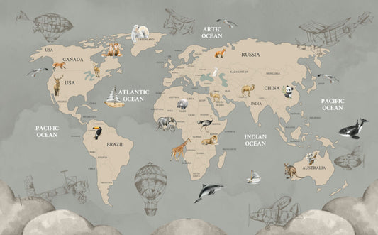 Eski Çağ Dünya Haritası Çocuk Odası 3D Duvar Kağıdı | Duvar Kağıdı Marketi