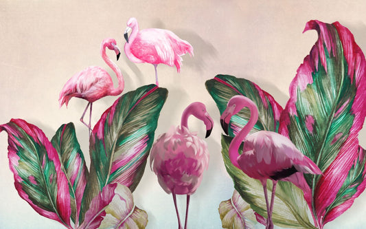 Flamingo ve Tropikal 3D Duvar Kağıdı