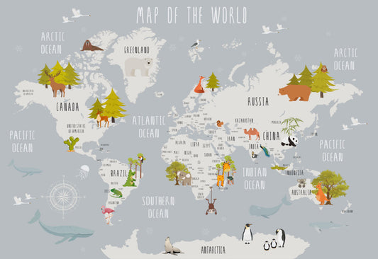 Farklı Ağaçlı Çocuk Haritası 3D Duvar Kağıdı | Duvar Kağıdı Marketi
