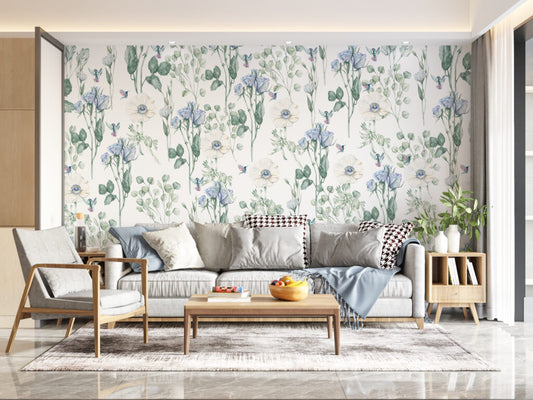 Farklı Çeşit Çiçek ve Kuş Desenli 3D Duvar Kağıdı