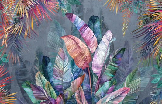 Geniş Yapraklı Çok Bitkili Renkli Tropikal Duvar Kağıdı