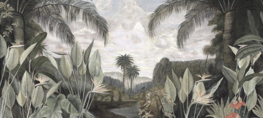 Göl İçindeki Tropikal Desenli 3D Duvar Kağıdı | Duvar Kağıdı Marketi