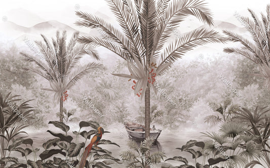 Göl Kenarında Hurma Ağaçları ve Kayık Duvar Kağıdı