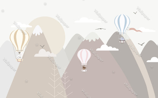Gökyüzünde Balonla Uçan Köpek Desenli 3D Duvar Kağıdı | Duvar Kağıdı Marketi