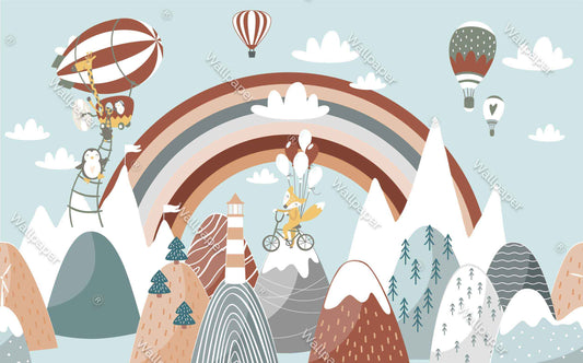 Gökkuşağı ve Balondaki Şirin Hayvanlar Duvar Kağıdı