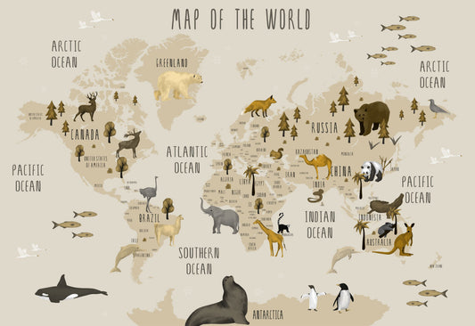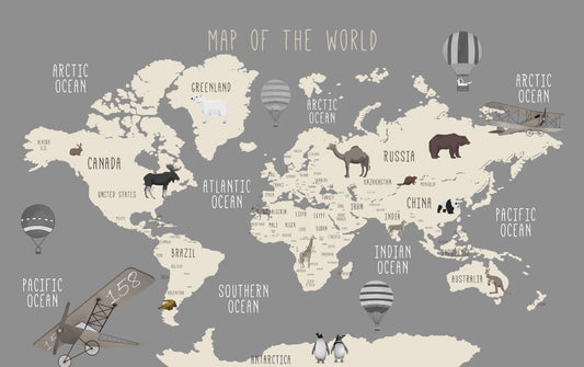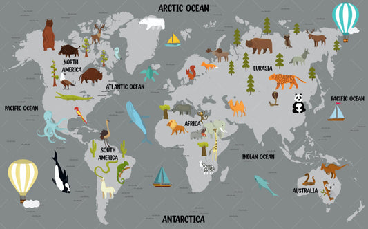 Hayvanlı Dünya Haritası Çocuk Duvar Kağıdı