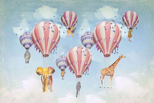 Hayvanları Taşıyan Uçan Balon Desenli 3D Duvar Kağıdı | Duvar Kağıdı Marketi